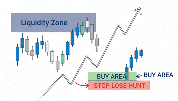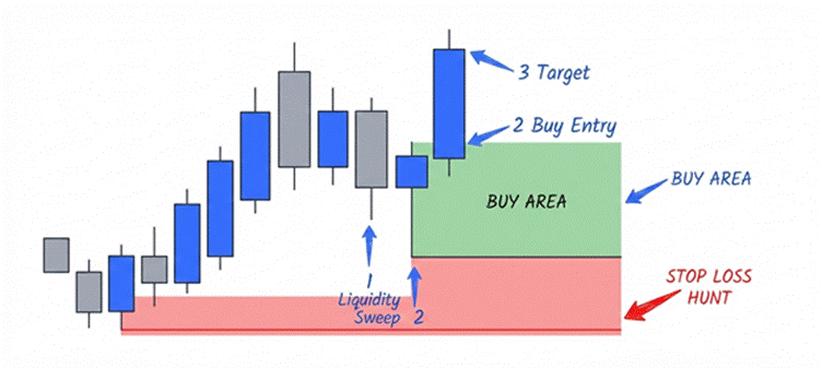 Liquidity sweep below support followed by a bullish reaction from the order block buy area.